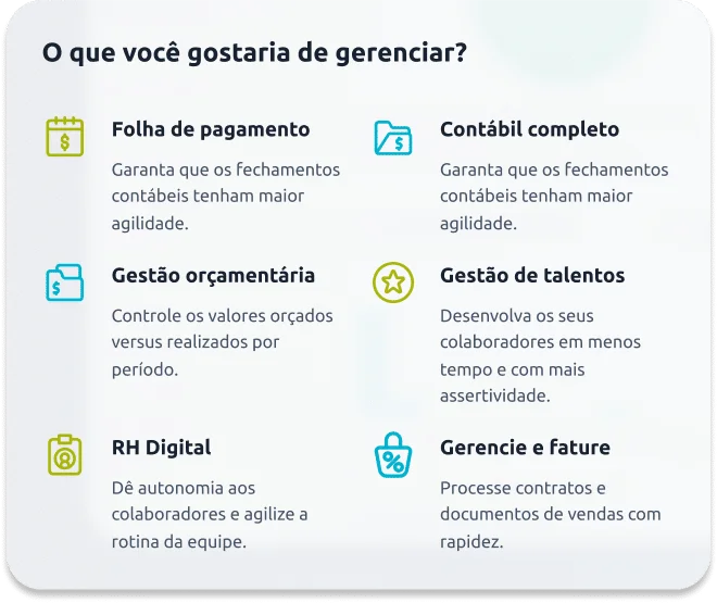 Oferecemos ferramentas completas para recrutamento e seleção, gestão de folha de pagamento...