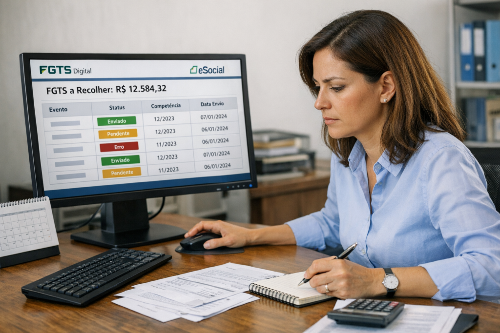 Com a implantação do FGTS Digital, o processo de recolhimento passou a depender diretamente da qualidade das informações enviadas ao eSocial. A rotina agora é composta por quatro etapas principais: