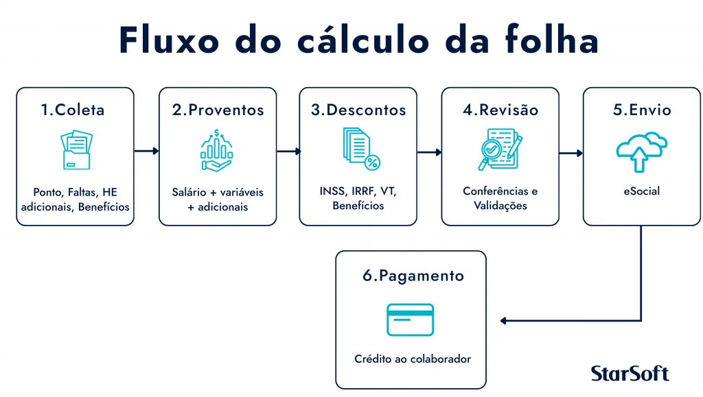 Dica prática: com um sistema de RH integrado, o DSR sobre horas extras é apurado automaticamente, os adicionais são aplicados conforme a jornada, e as bases de INSS/IRRF/FGTS são formadas sem planilhas paralelas.
