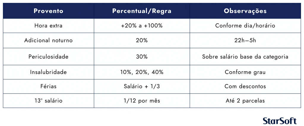 Tabela – Proventos e regras